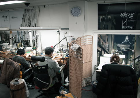 각 분야의 최고의 장인들로 구성된, 10명의 장인이 한팀으로 일하는 백작 명장 공방